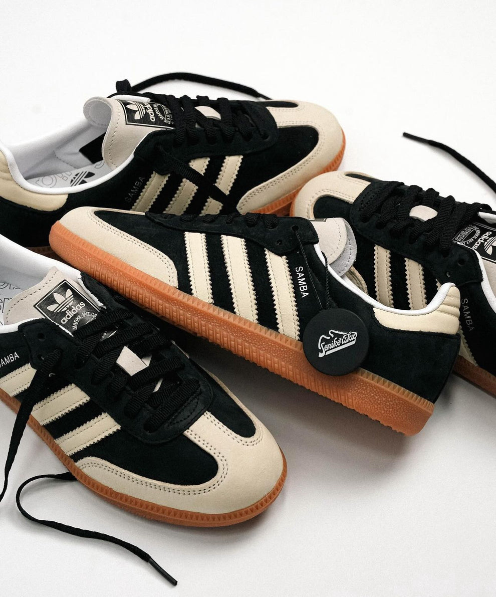 The Adidas Samba OG “Black / Wonder White” brings a sleek and timeless look to one of Adidas’ most iconic silhouettes. Featuring a premium black leather upper with off-white 3-Stripes and heel tab, this pair blends vintage charm with modern street style. The signature gum sole completes the classic design, offering great traction and all-day comfort. Perfect for everyday wear, from casual outfits to sporty looks.
