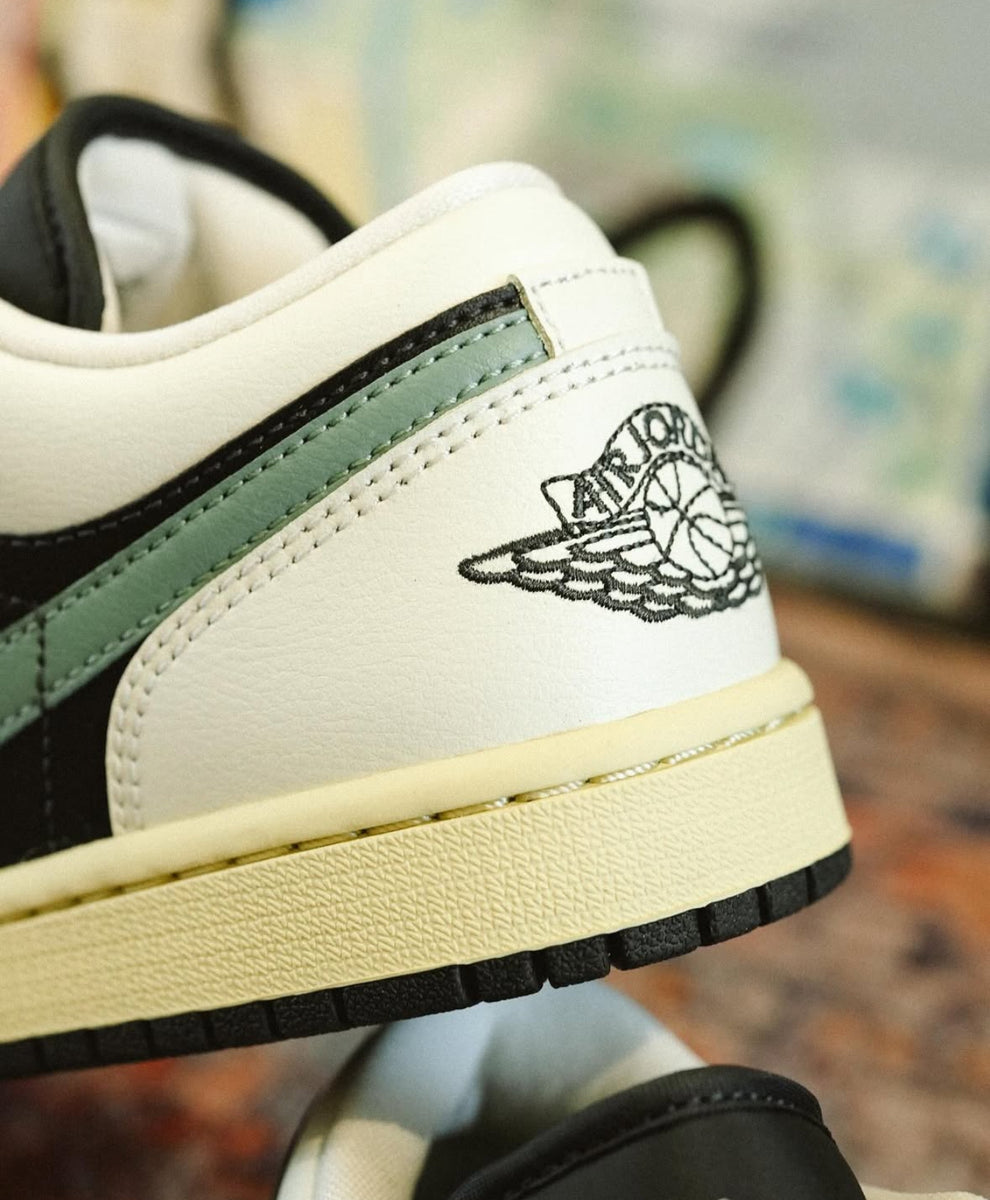 The Air Jordan 1 Low “Jade Smoke” combines soft white leather with smoky green overlays and Sail accents for a fresh, elegant look. Its clean color blocking and signature Wings logo on the heel make it perfect for everyday wear.