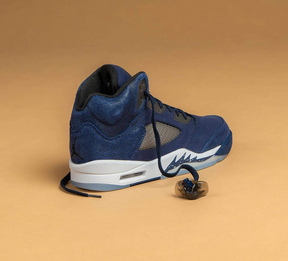 The Air Jordan 5 “Midnight Navy” features a rich navy suede upper with silver accents and an icy translucent outsole. Blending premium materials with classic Jordan details, it offers a timeless look and superior comfort.