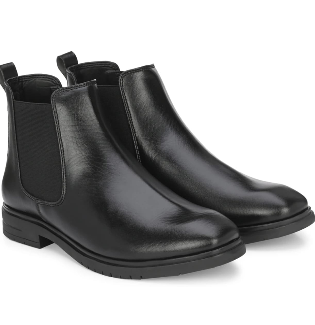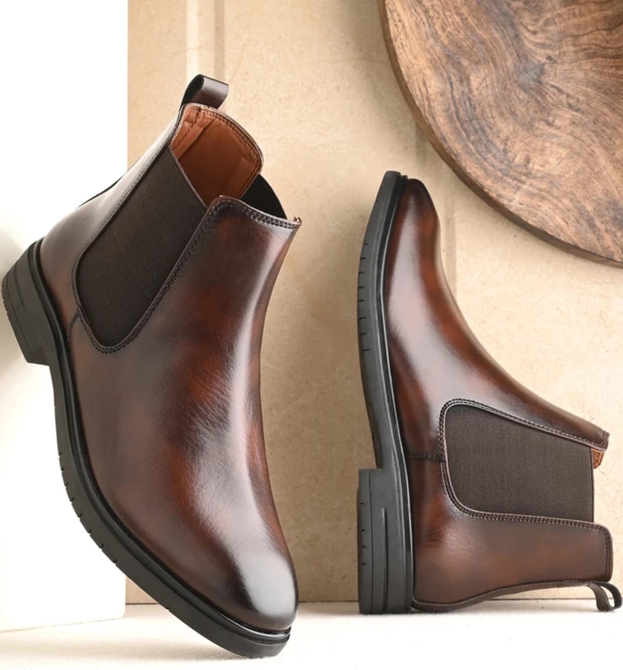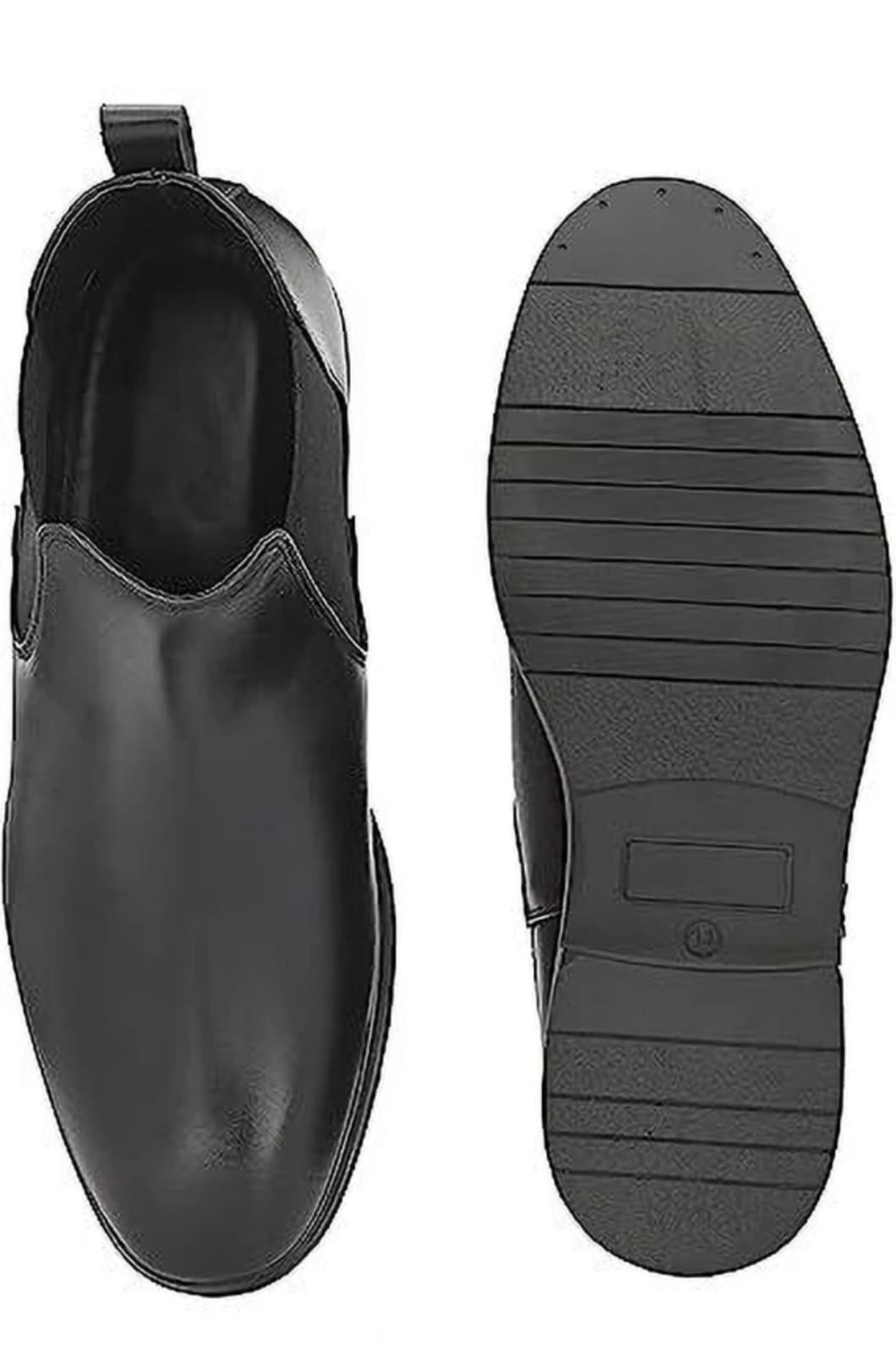 Make a sophisticated statement with these classic Chelsea boots. Crafted from sleek, polished faux leather, these boots combine timeless style with all-day comfort, making them ideal for both formal and smart-casual occasions. Effortlessly versatile, they pair perfectly with trousers, jeans, or chinos for work, parties, or daily wear.