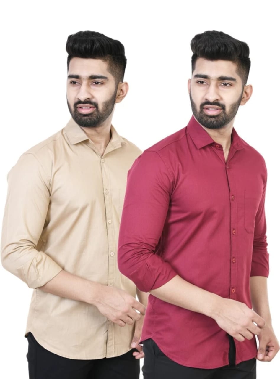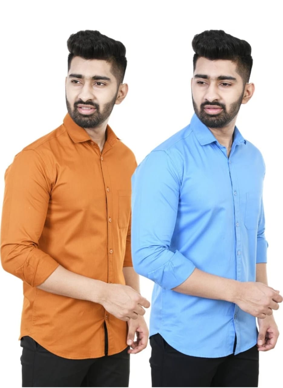 Refresh your wardrobe with this pack of 2 men’s regular fit solid casual shirts, designed for comfort and effortless style. These clean, classic shirts are versatile for work, travel, and everyday wear, keeping you cool and confident with high-quality, breathable fabric. Enjoy the convenience of wrinkle-resistant material and a timeless full-button design, perfect to dress up or down for any occasion.