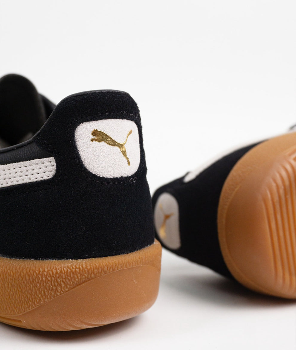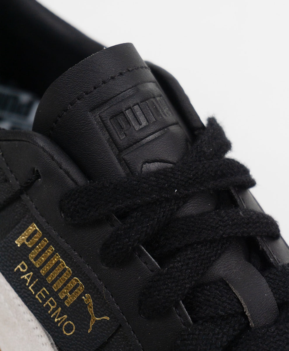 The Puma Palermo “Black White Gum” brings back terrace heritage with a sleek monochrome finish. Featuring a smooth black suede upper, crisp white Formstrip, and classic gum sole, it blends vintage football style with everyday streetwear appeal.