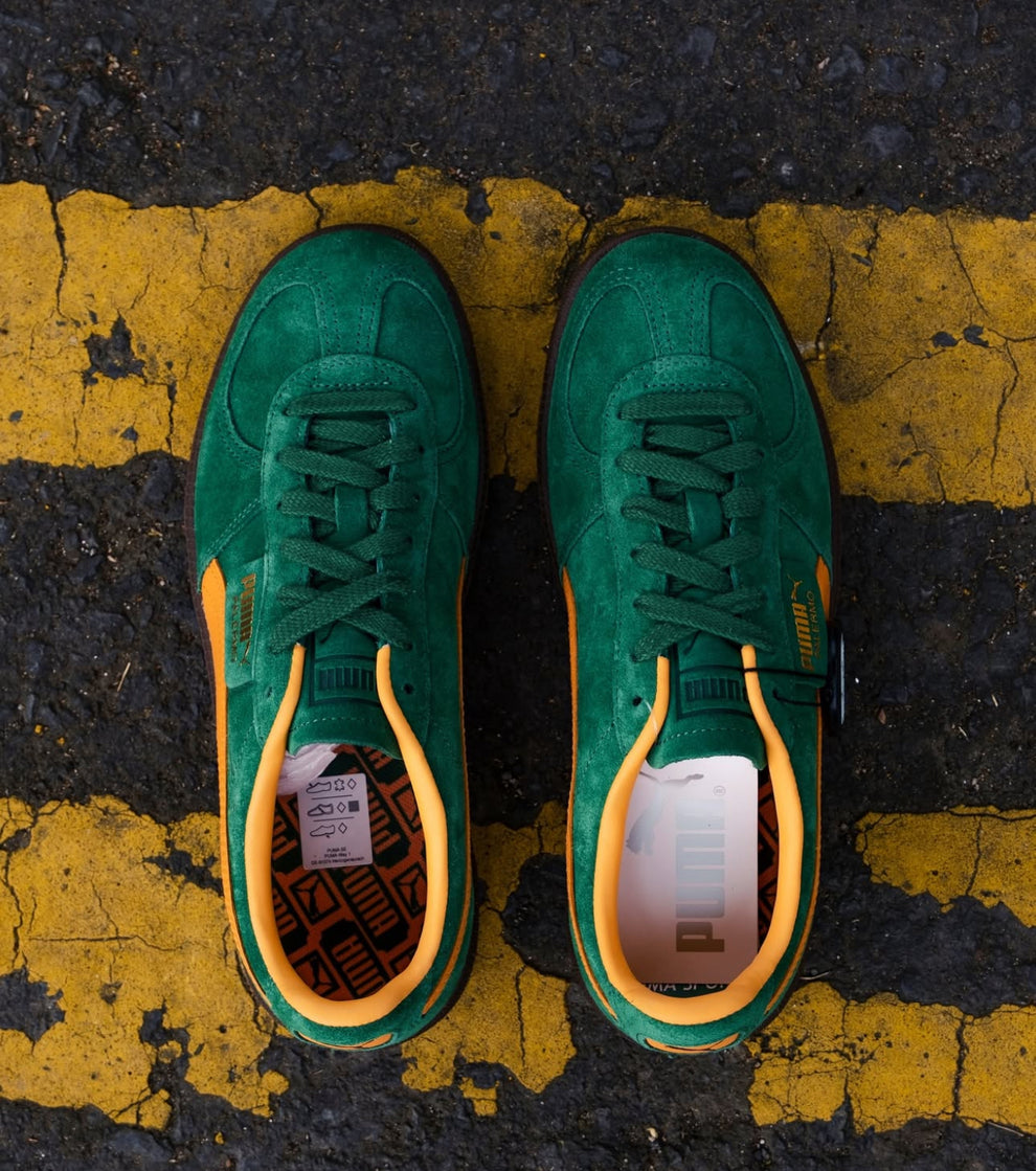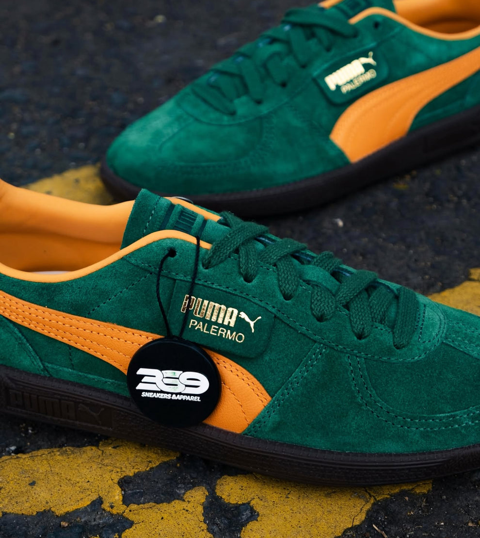 The Puma Palermo “Vine Clementine” revives a terrace classic with bold, vibrant flair. Featuring a premium suede upper in rich orange tones with contrasting green Formstrip, this sneaker combines retro football style with modern street appeal.