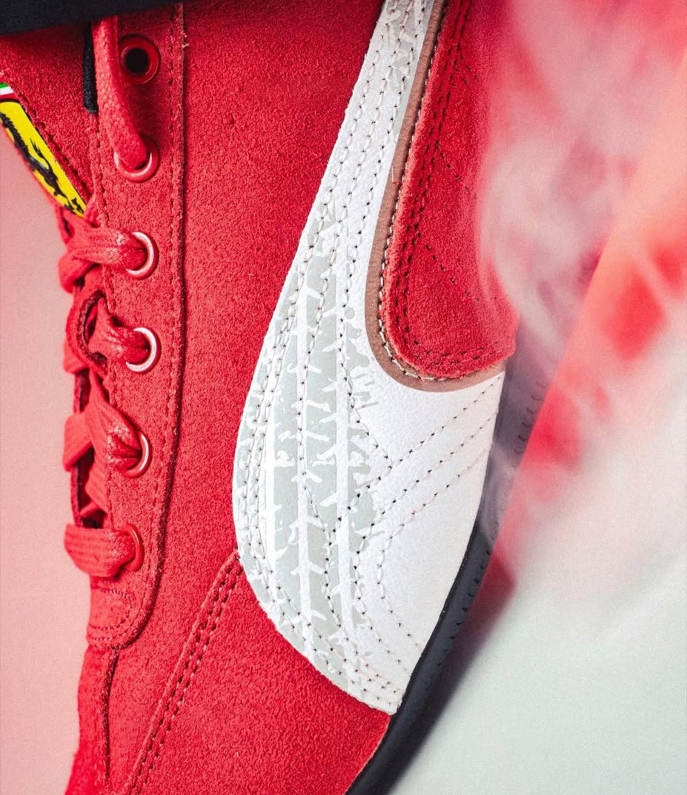 The Puma Speedcat Scuderia Ferrari “Rosso Corsa” celebrates motorsport heritage with iconic Ferrari flair. Crafted in bold red suede with the Ferrari logo and white detailing, it delivers a sleek, low-profile silhouette inspired by race-day style.