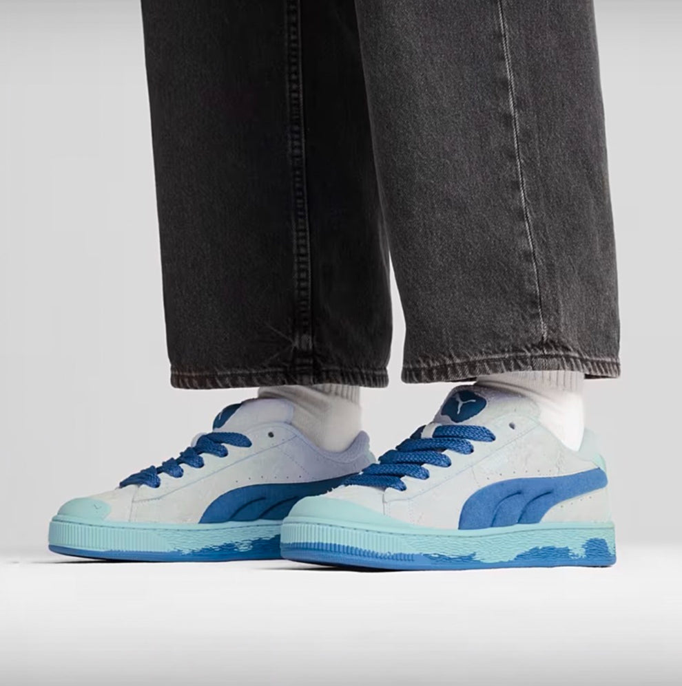 The Puma Suede XL Crush “Dewdrop Turquoise Surf” brings a fresh twist to the classic silhouette with its bold, asymmetrical design. Featuring soft turquoise suede, oversized proportions, and signature Puma detailing, it delivers standout street style with premium comfort.