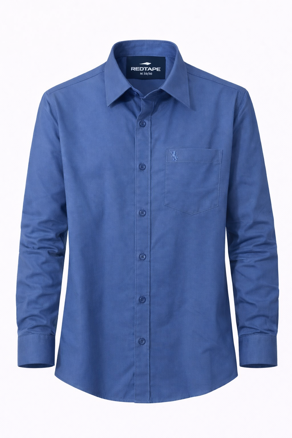This elegant solid blue shirt from RedTape is crafted from soft, breathable fabric for all-day comfort. Designed with a sharp spread collar, full sleeves, and a clean button-down front, it delivers a polished and professional look. Ideal for office wear, formal events, or smart-casual styling.