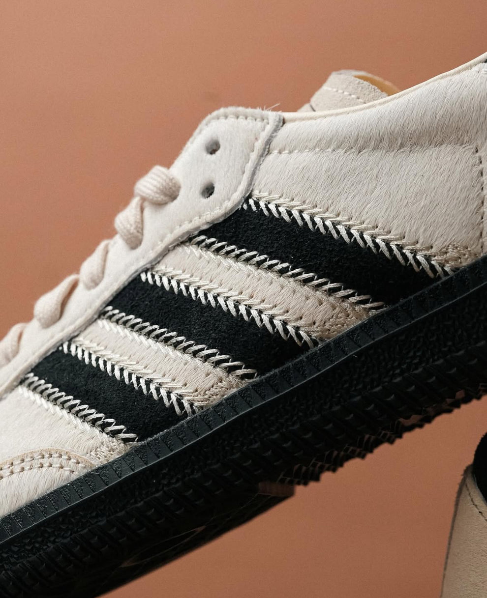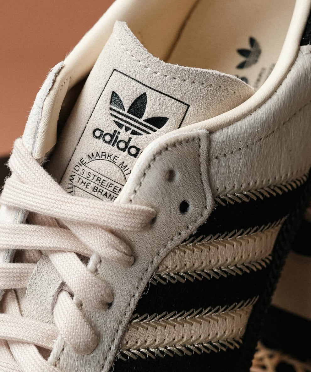 The adidas Samba OG “Wonder White Black Pony” puts a premium twist on the classic design with a pony hair upper in off-white tones, accented by black leather stripes and heel tab. Finished with a vintage gum sole, it blends texture, luxury, and heritage style.