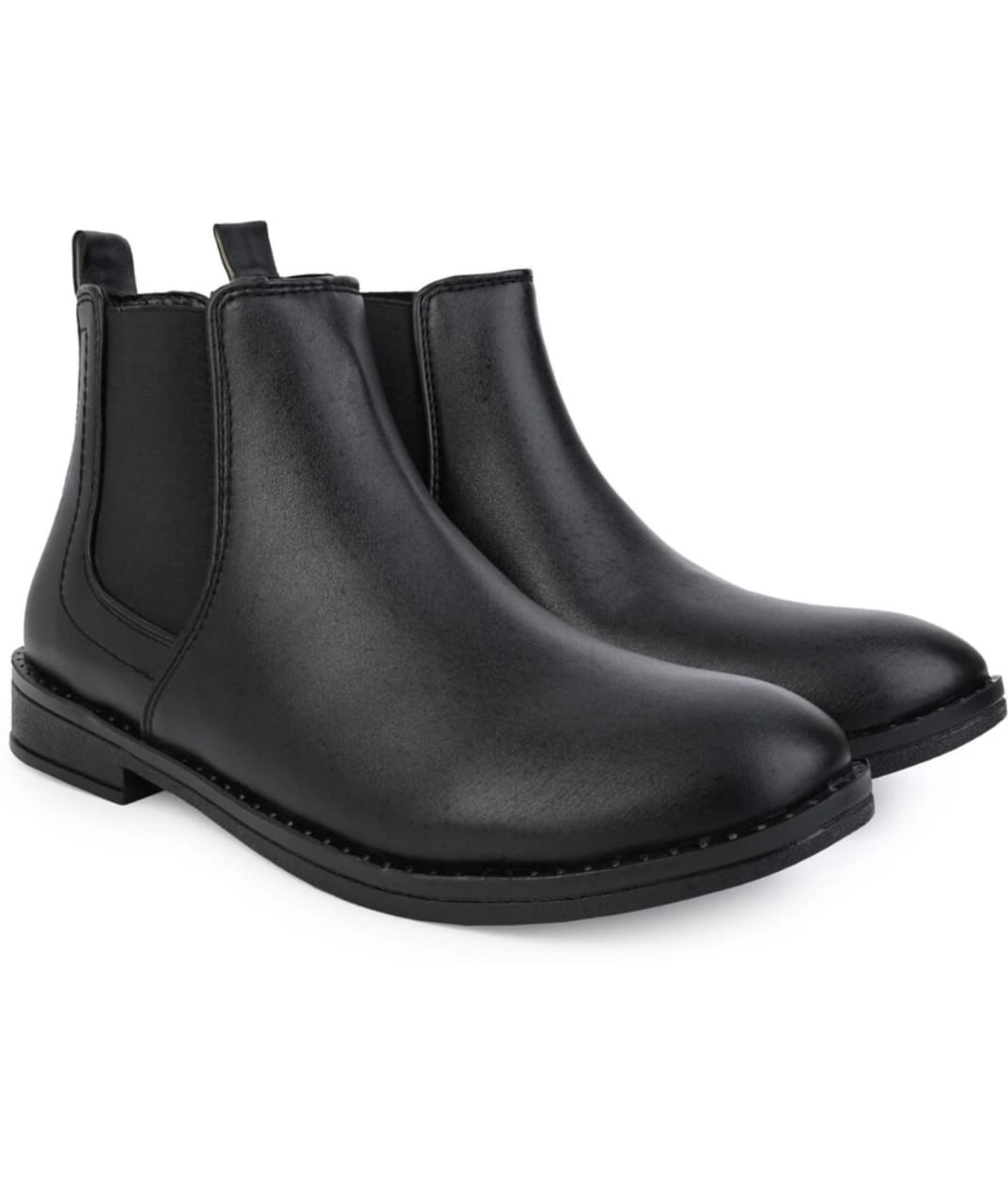 Step into classic sophistication with these sleek black Chelsea boots. Crafted for both style and comfort, these boots feature a smooth faux leather finish and timeless silhouette, easily elevating your look from workday formal to weekend smart-casual. Slip them on with jeans, trousers, or chinos for ultimate versatility.