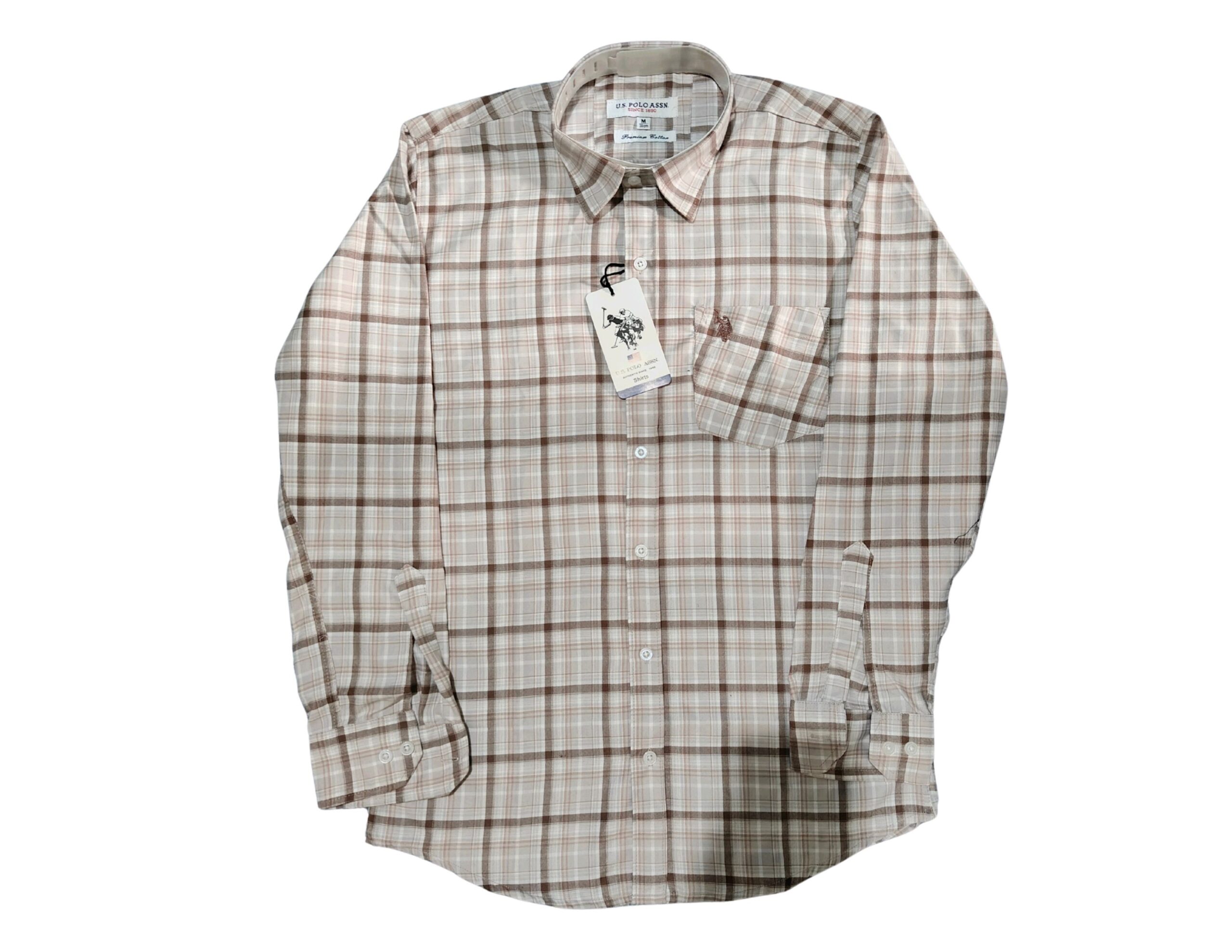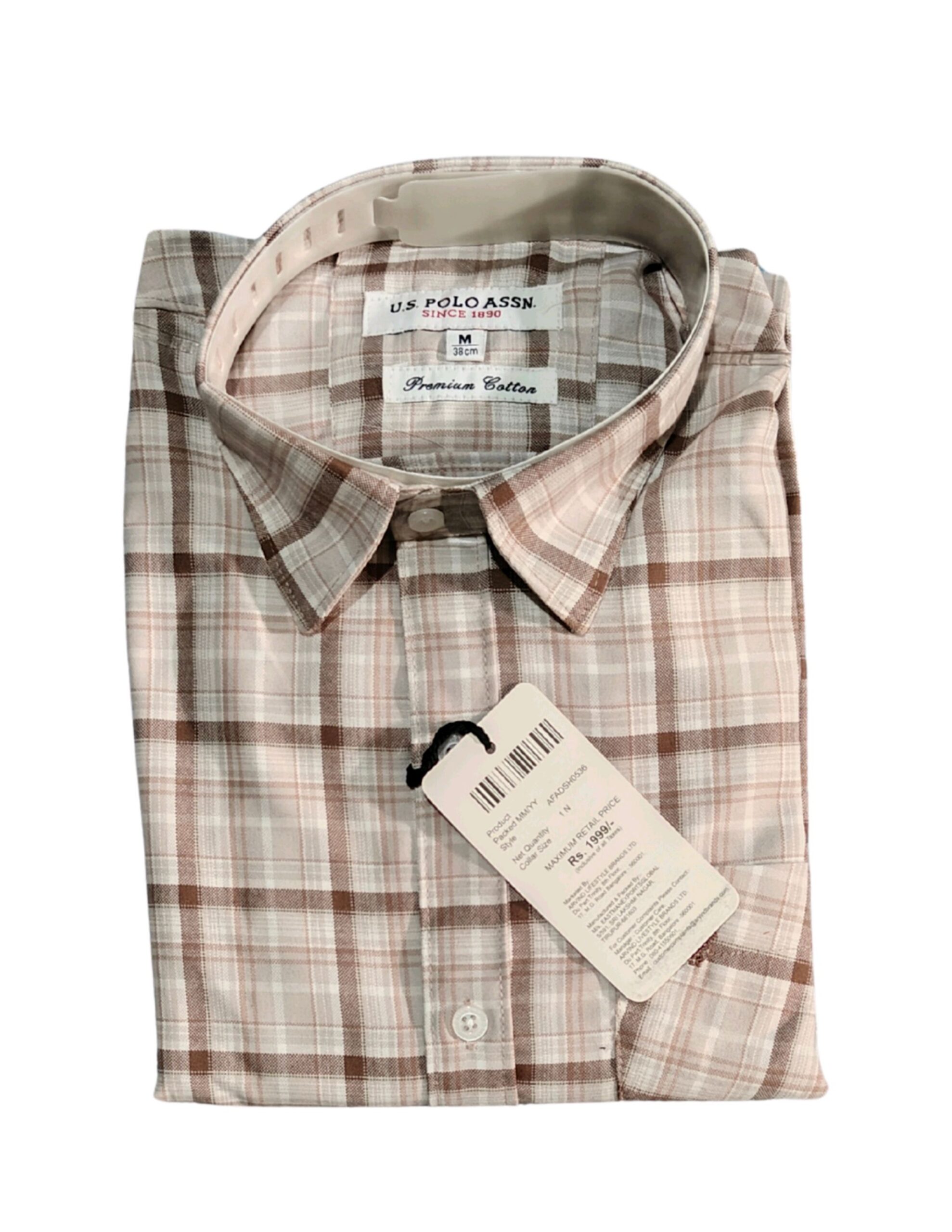 This U.S. Polo Assn. beige and brown checked shirt offers a refined blend of classic style and everyday comfort. Crafted from premium cotton fabric, it feels soft and breathable, making it ideal for all-day wear. The subtle check pattern adds a timeless touch, while the regular fit ensures a relaxed yet polished look — perfect for office-casual days, outings, or weekend wear.