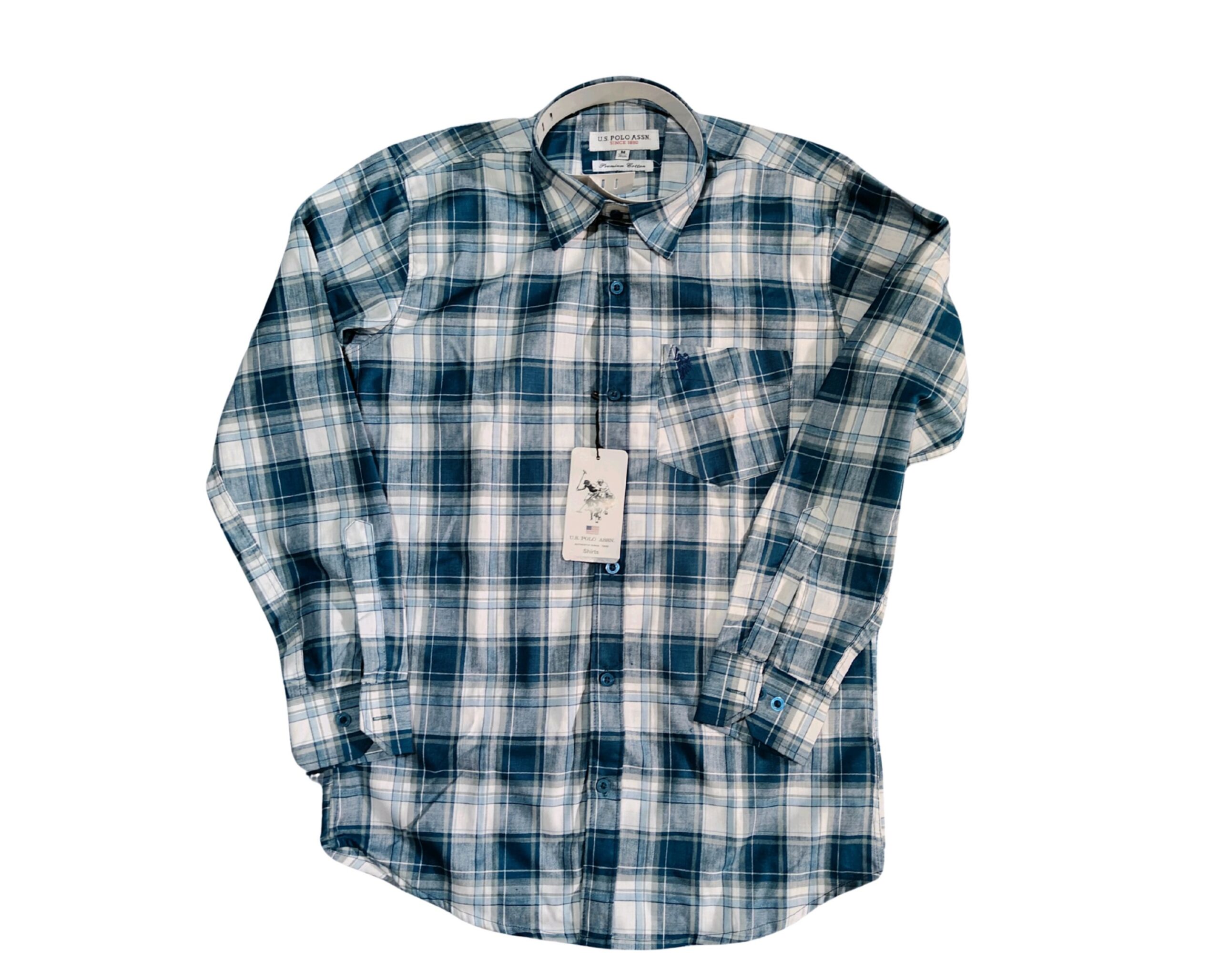 - Color: Blue & white check pattern