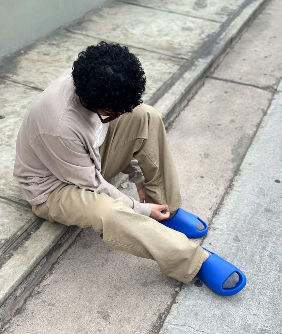 The Yeezy Slide “Azure” delivers bold simplicity with its striking blue colorway and sleek design. Crafted from lightweight EVA foam, it provides soft cushioning and a smooth, contoured fit for all-day comfort. Perfect for those who want to stand out while staying comfortable.